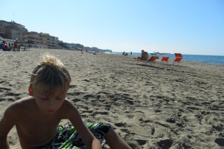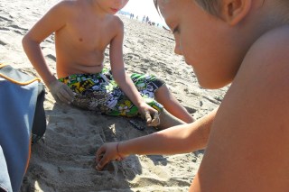Första söndagen i oktober. Det är runt trettio grader varmt i luften. Träd och buskar har fått fnatt och blommar igen. Det är en ovanlig värme. Vi beger oss till stranden.