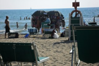 | Mannen ber barnen att inte stänka på mig när jag långsamt försöker övertyga min kropp. De tar det på fullaste allvar och väntar lugnt in sin frusna mamma…Jag får veta sen, när jag äntligen tagit några simtag, att det var 23 grader i vattnet. |