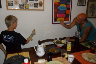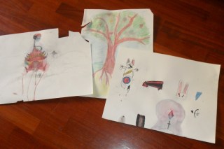 Tills en eftermiddag. Istället för att tillåta att det vilda slagsmålet kommer igång eller tv-hänget eller datorspelandet, plockar jag fram färger och papper och spånar lite med barnen.