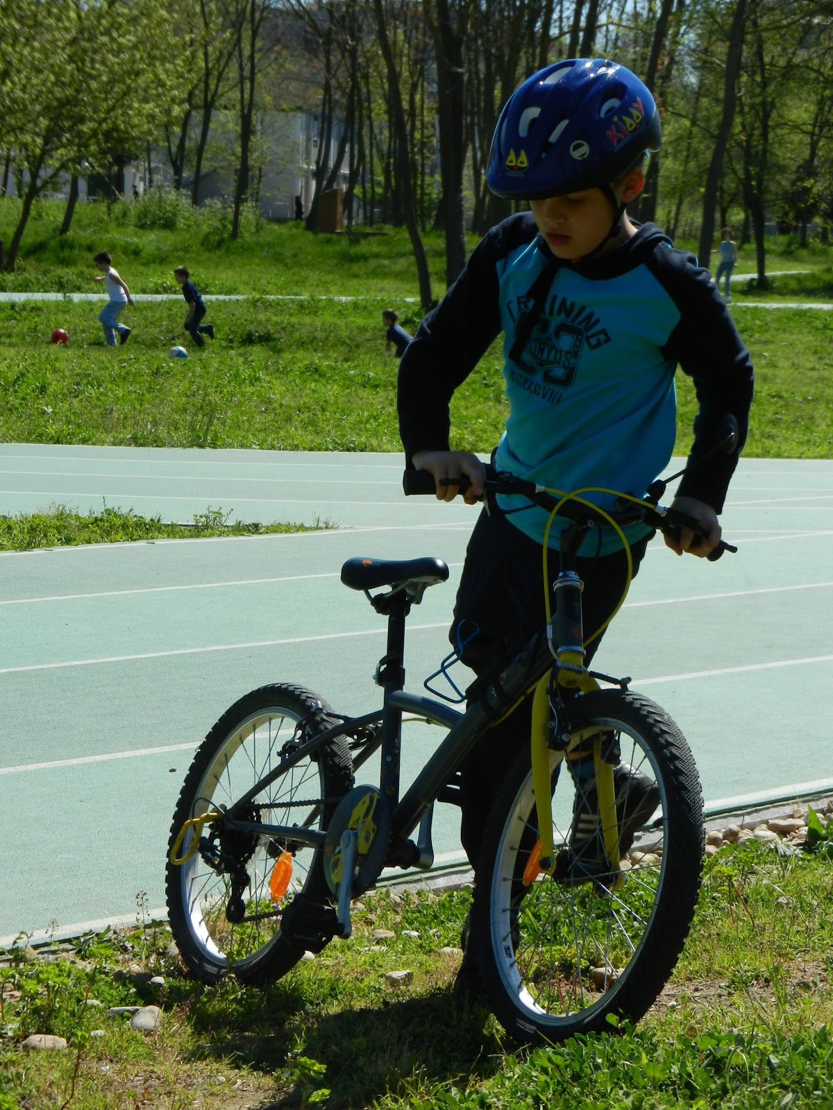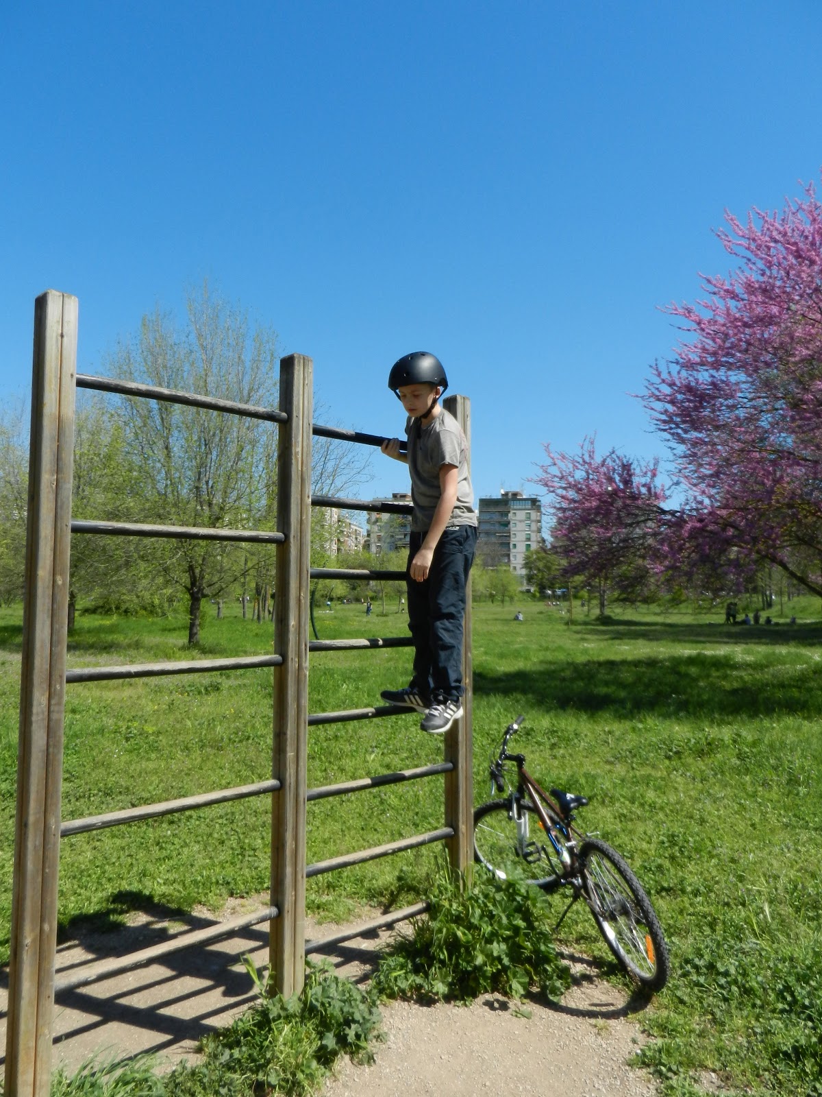 | På löpningsbanan i parken nära farmor och farfar. |