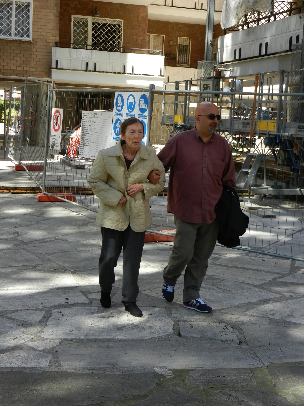 Mannen och jag går.