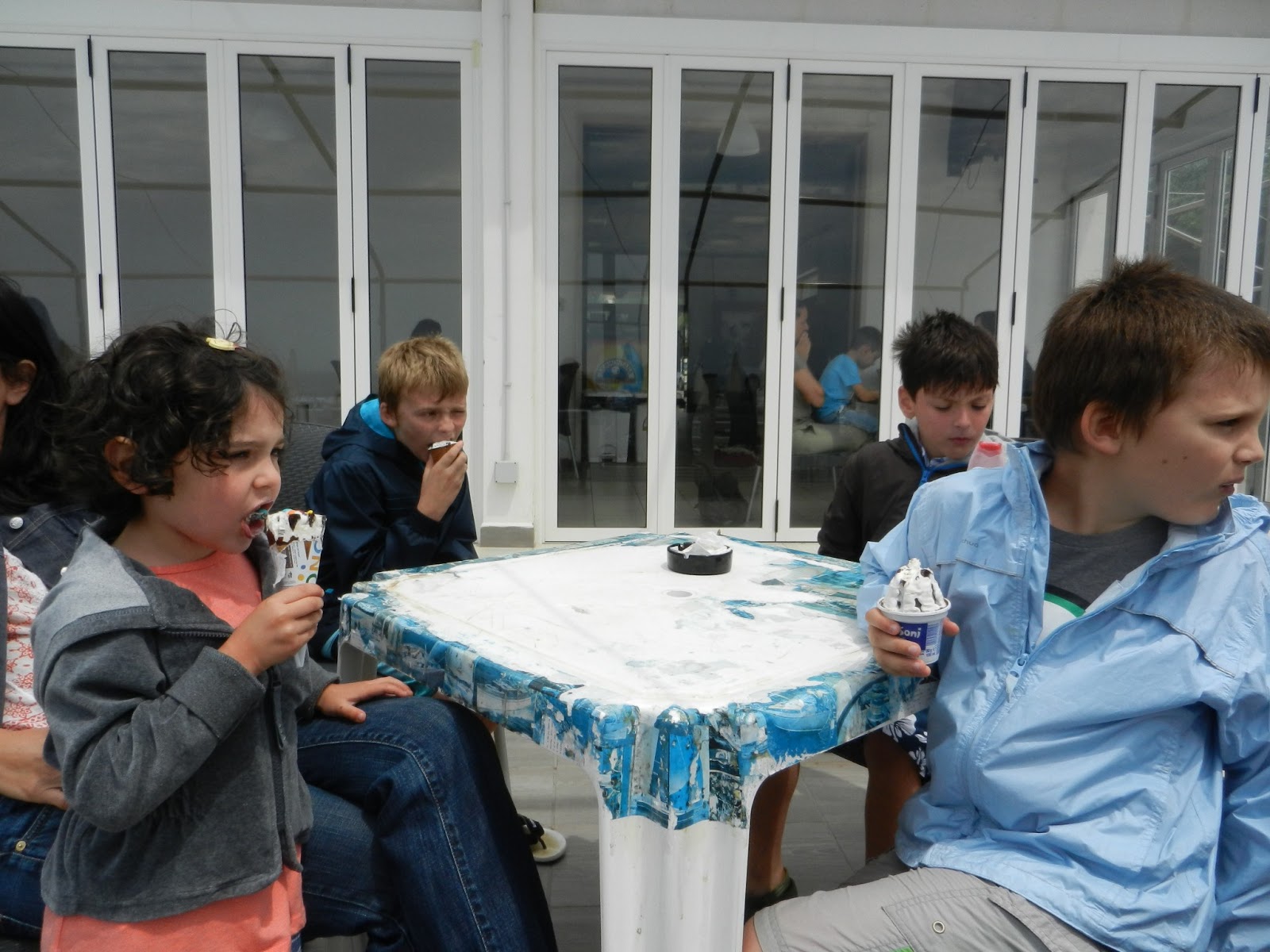 …äta glass och leka att det är precis så varmt som det brukar i juni i Italien. Fast det egentligen är en osedvanligt kall och konstig söndag vid havet.