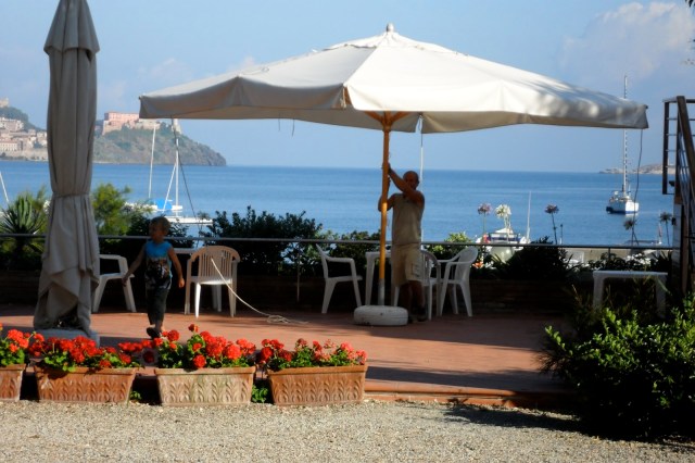 Vi har alltid någon bra ursäkt. I fjor var det att vi ville känna att allt var som det brukade. Efter ett jobbigt år var det grejen. I år får mannens jobb skulden. Egentligen stortrivs vi på Elba. Fast vi egentligen pratat om att resa och se andra ställen. Visa barnen Grekland t ex. Ändå faller vi till föga och drar iväg med dykargrejer och yogamatta en morgon klockan nio då det redan är kräkvarmt. För att komma fram till Piombino vid tolvsnåret och sen stå där och vänta i helvetesvärmen på en timmes försenad färja.