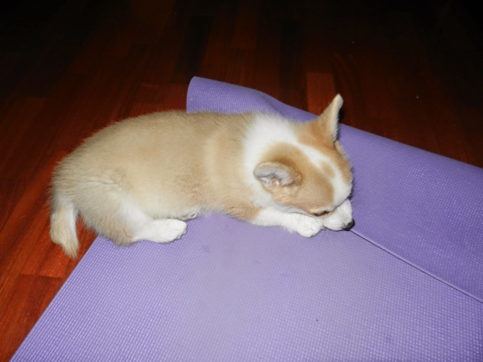 Just det! Han ska bara landa. Först på golvet och sen i yogan.
