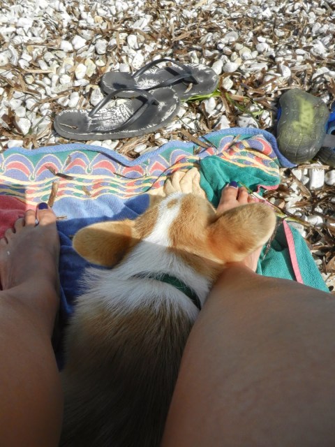 Så efter att jag försökt få valpen i vattnet och min misslyckade snorkel-tur då jag bara sög i mig en massa saltvatten och blev nervösare och nervösare i stället för att njuta av undervattens världen så där från ovan, så parkerade vi oss på badlakanet.