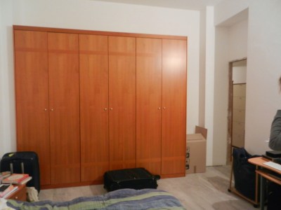 Vår matsal med det där skåpet som inte längre gick att få på plats enligt flyttgubbarna men som snickaren senare skulle trycka på plats så att det bara sa smack.