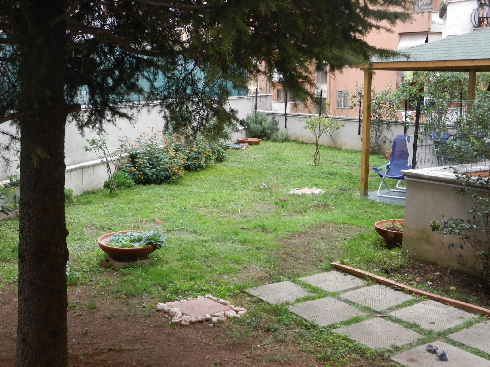 Vår oas ligger på garagen och en gräsmatta behöver litersvis med vatten varje dag.