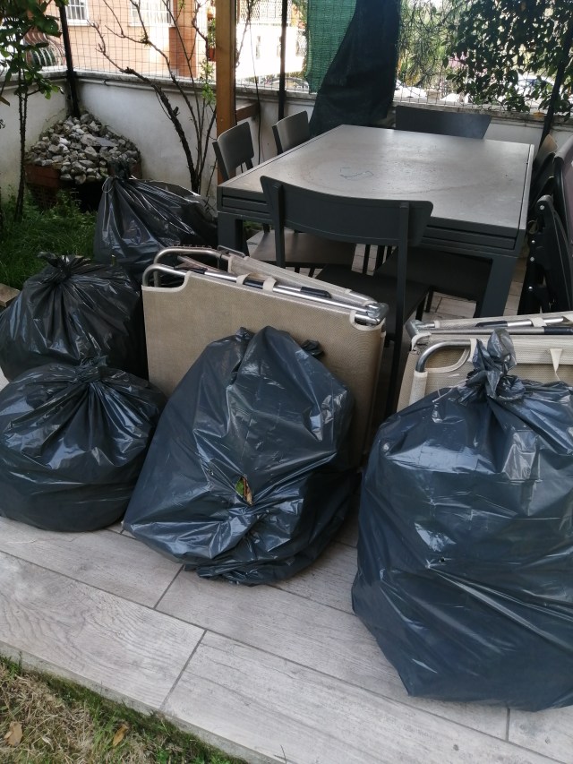 Alla säckarna som exet lovat köra till tippen så småningom.