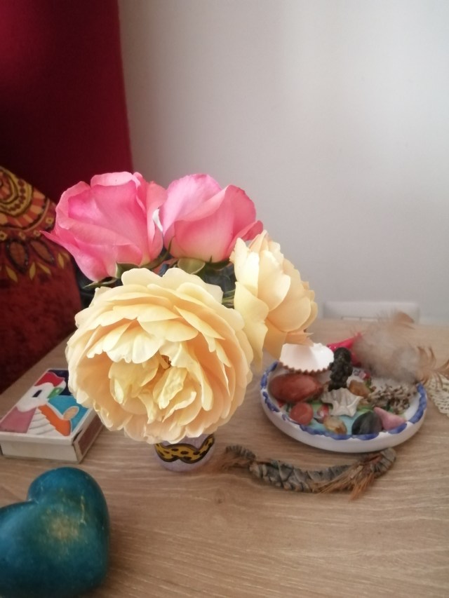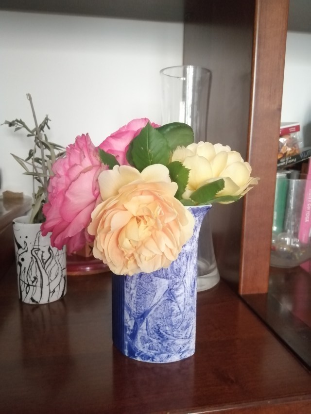 Plockar in lite rosor från trädgården som fullständigt exploderar i rosblomning nu.
