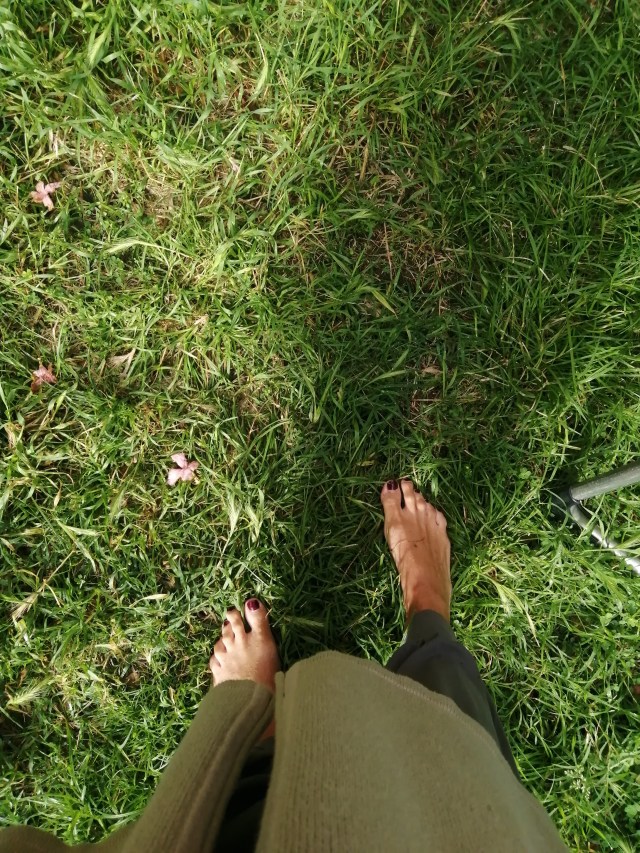 Mina fötter och jag mår åtminstone utmärkt av det genomvåta gräset.