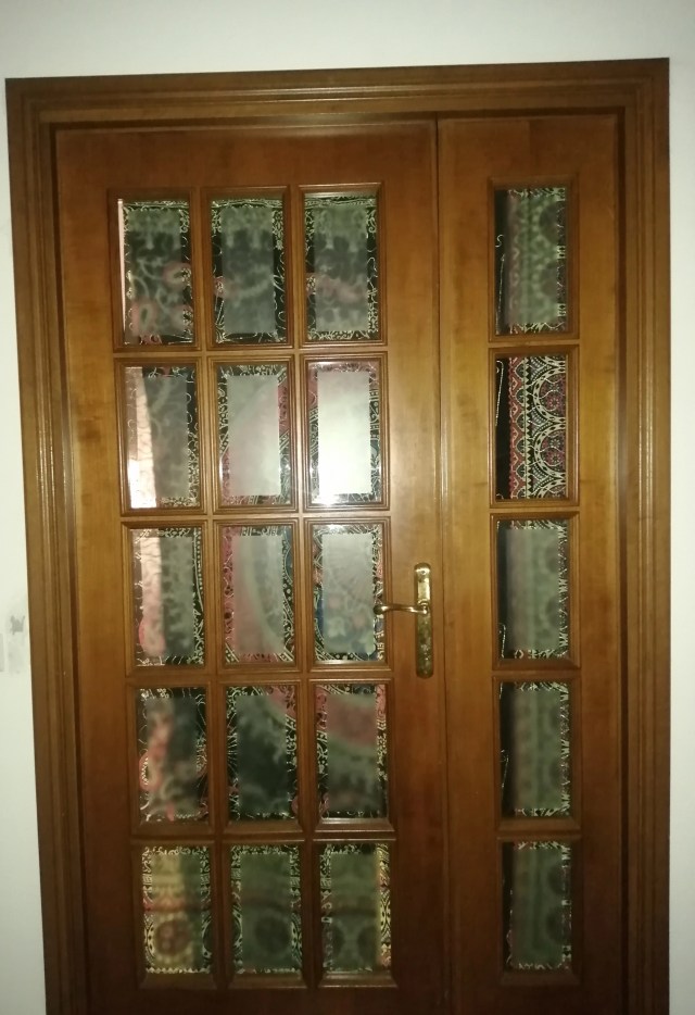 Det är hon som för någon vecka sedan tröttnade på att ingenting hände med rummet Vladimirio bor i. Drog ner draperiet som han lovat ta ner för tvättning, medan hon tvättade det sydde hon nya gardiner att hänga för, då han ju ändå hatade det där draperiet som var så svårt att inte klämma i dörren.