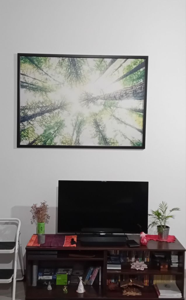 Vi hade ingen tur med parkeringen men sonen kom på att det ju finns parkeringar ute också så till sist löste vi det trots att det var mycket folk i rörelse idag och i eftermiddag kom min tavla upp. Sonen hjälpte mig under kommentarer om att ”varförhasåbråttommedattsättaupptavlornärhonändåskaflyttahärifrånsen”.