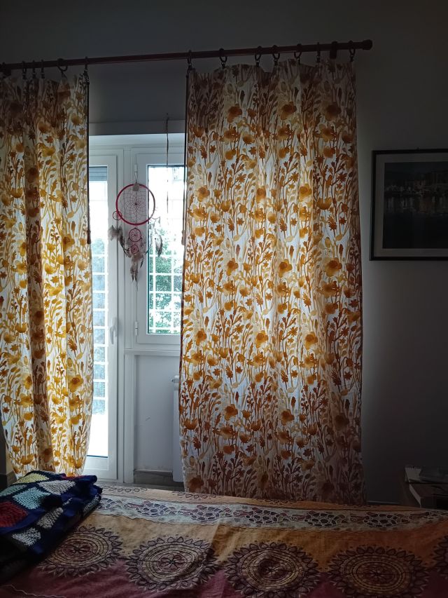 Sen tog jag tag i saker som bara legat, som att hänga upp gardiner jag köpt på rea på IKEA under sonens ”är det verkligen nödvändigt?”. Svar; ”nej, men bara färgen gör mig glad!”