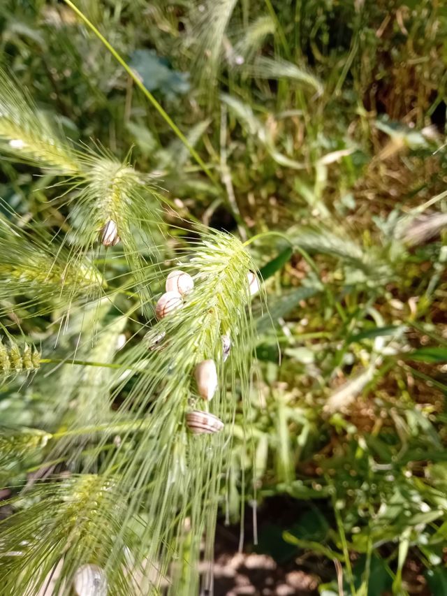 Vi studerar de märkligt många, små sniglarna som verkar hänga fast i vildhavren.