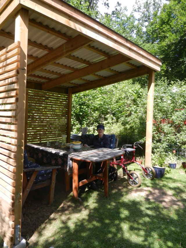 En ny uteplats har byggts av en vän i trädgården och där sitter gärna min fasters man (säger man farbror i Sverige när det handlar om ingifta? I Italien räcker det med att vara nära vän för att bli zio eller zia. Kulturella svårigheter jag fortfarande tampas med ha ha ha!) när solen värmer.