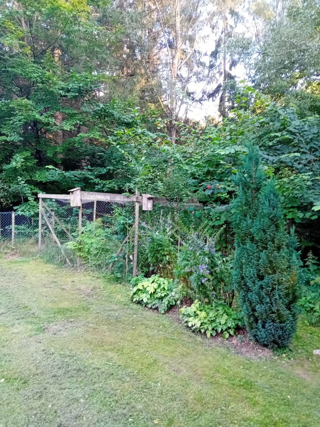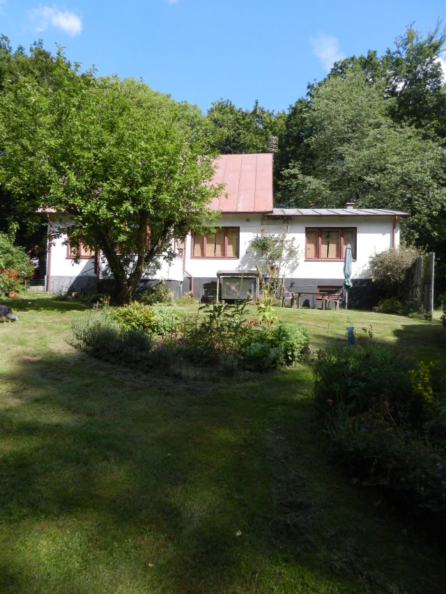 Och för några år sedan innan sjukdomar och annat elände kom in i deras liv hade min faster och hennes man ett trädgårdsland här framför det lilla röda huset.