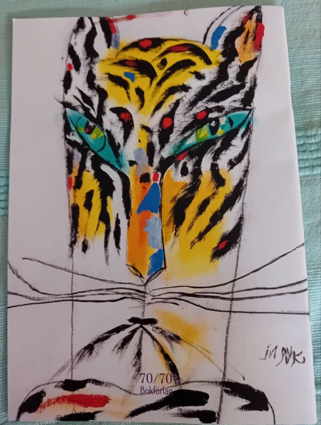 Där går vi runt i en värld full av kaniner, hundar och tigrar. En del är i svartvitt, Pyks sjuka del i livet framförallt. Det mesta är med mycket färg. Samma barndom som beskrevs i boken ser jag gå igen i tavla efter tavla. En hel del resor återspeglas. Under en del av sin karriär fotograferade hon. En del av fotografierna finns med.