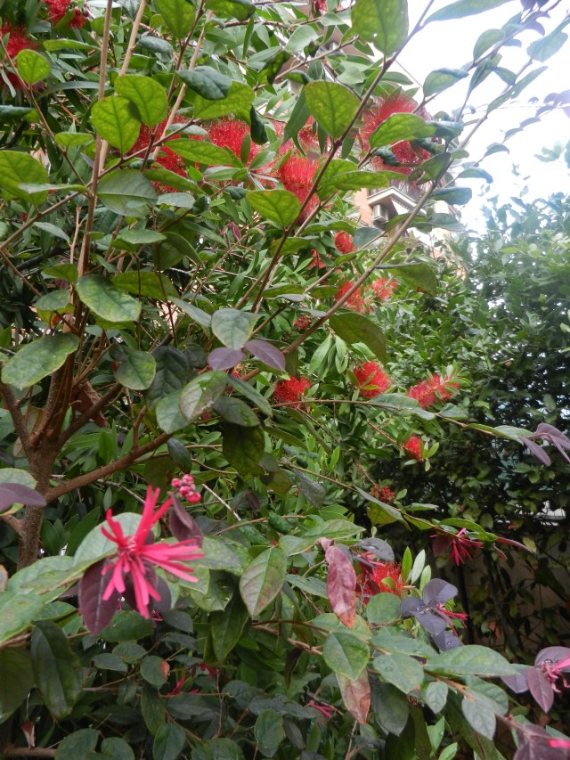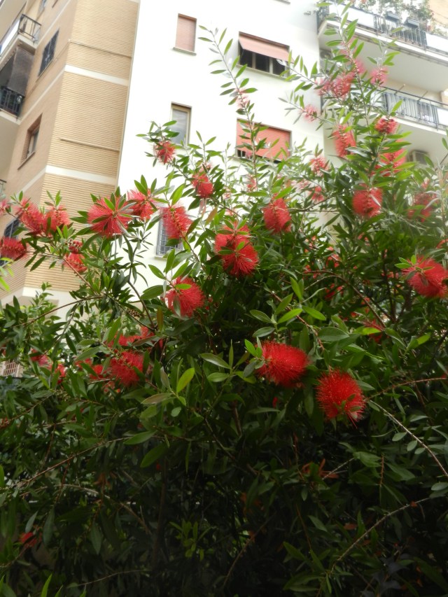1. Kul du hänger på! Flaskborstträdet är en favorit här hos mig. Vet inte heller vad den vita är för blomma, tänker det inte är så himla noga egentligen, huvudsaken är ju att vi njuter, eller hur 🙂 Jag har inte provat dahlior här, tänker jag har det för torrt. Men så klart värt att prova. jag har inte börjat skörda mina granatäpplen än, de har inte fått den djupa röda färgen än. Ha en fin helg!