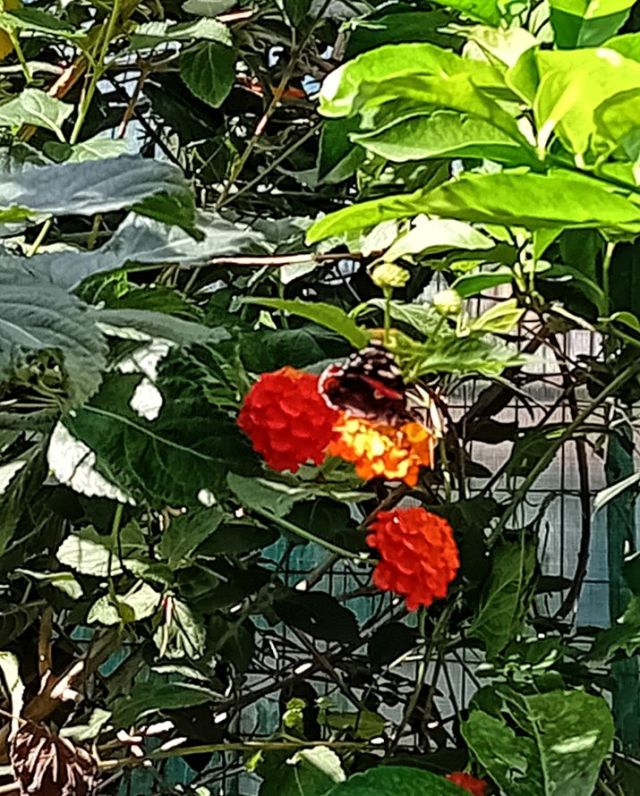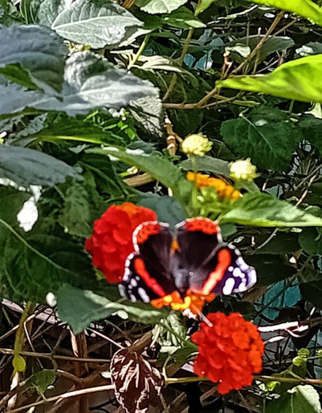 Inga bra bilder men jag hann inte hämta kameran och dessa är de bästa jag fick till innan fjärilen drog. Enligt appen, jag har, är det en Amiralsfjäril.