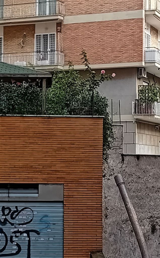 Efter en sån halvmisslyckad promenad får jag syn på mina rosor där över garaget.