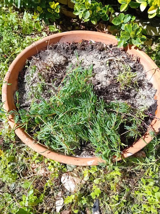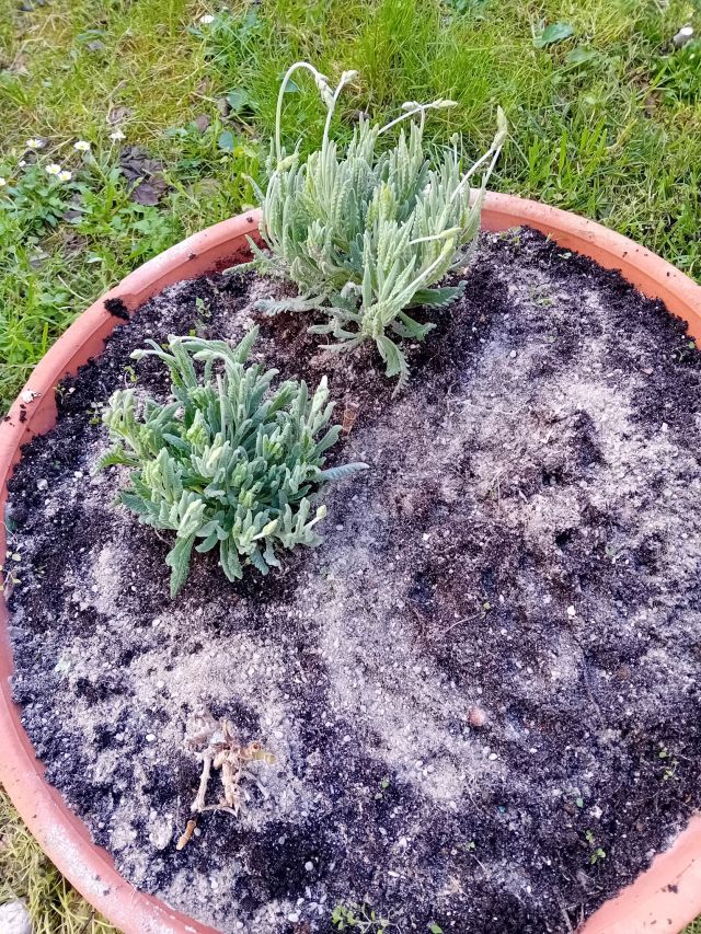 Satte nya lavendel efter en tanke som dök upp när jag frågade en bloggvän om det. De gamla stod där bevattningen kör för fulla muggar på sommaren även om sonen inte tycker det är tillräckligt. Om man inte gillar vatten och får vatten var och varannan dag så är det väl klart som korvspat att man inte trivs.