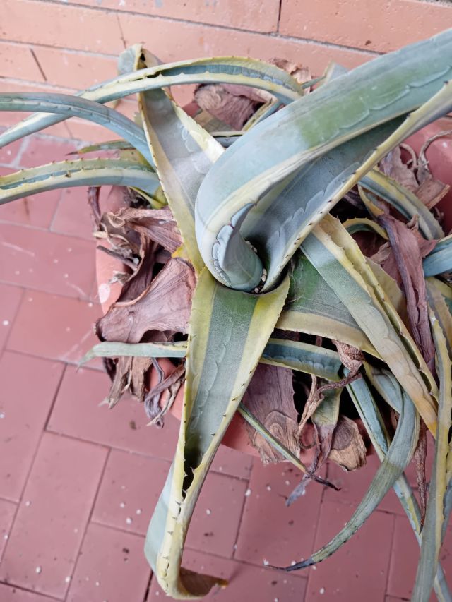 Där den hängde placerade jag istället den, som jag tror är en agave, som stått på terrassen där fåglarna äter och bajsar.