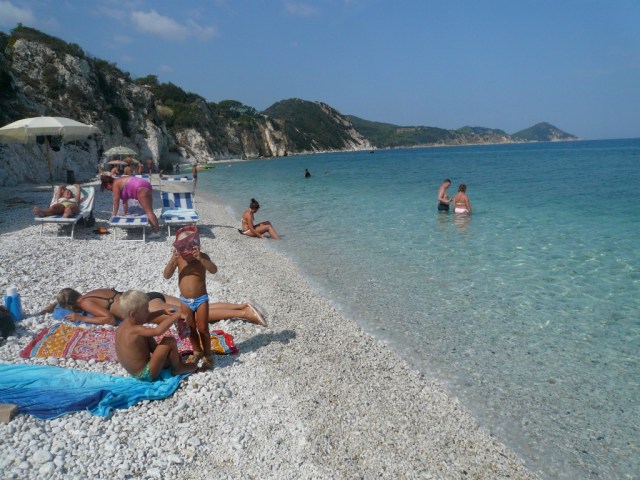 Vilket skulle visa sig vara alldeles riktigt. Innan jag visste ordet av svängde vi in och stannade framför en helt underbar strand med små runda vita stenar (påminde om en strand på Elba faktiskt), ett kristallklart, spegelblankt, lugnt hav som glittrade i ljus turkos.