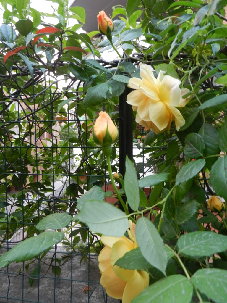 Jag blev ju med rosor när vi flyttade hit. Trodde aldrig de skulle överleva mitt ointresse. De är tydligen ordentligt rotade. Fast den gula satte vi…vill jag minnas. Kram