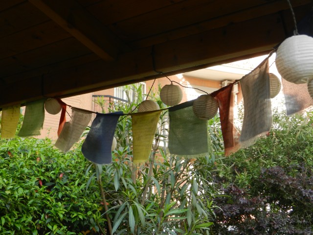 Ljuslyktorna som jag envist hänger upp och trotsar regnhoten som körs om och om igen.