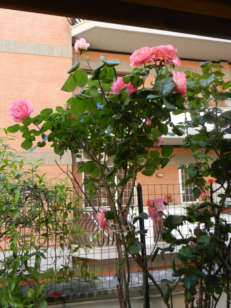Jag har nu ett helrosa hörn intill matbordet som är helt underbart och som sagt alldeles oförtjänt. Tvingades dock binda upp den stora rosen som lagt sig trött över bordet efter en galen storm häromdagen. Den var redan på väg neråt innan på grund av tyngden sen la stormen den i K.O.