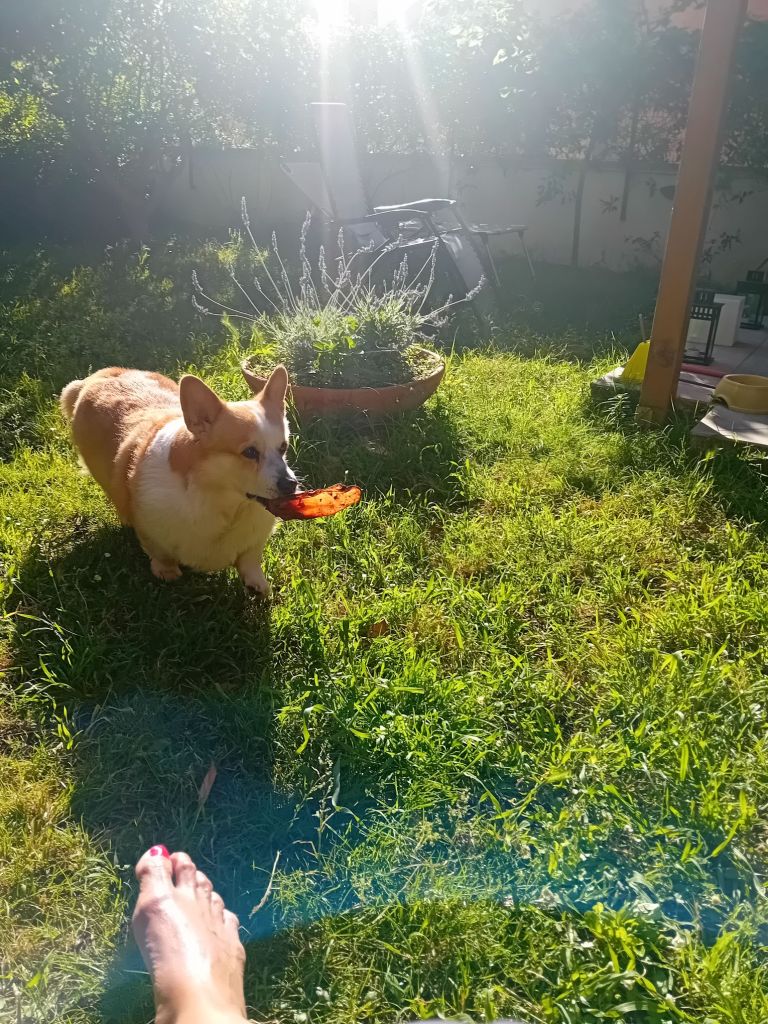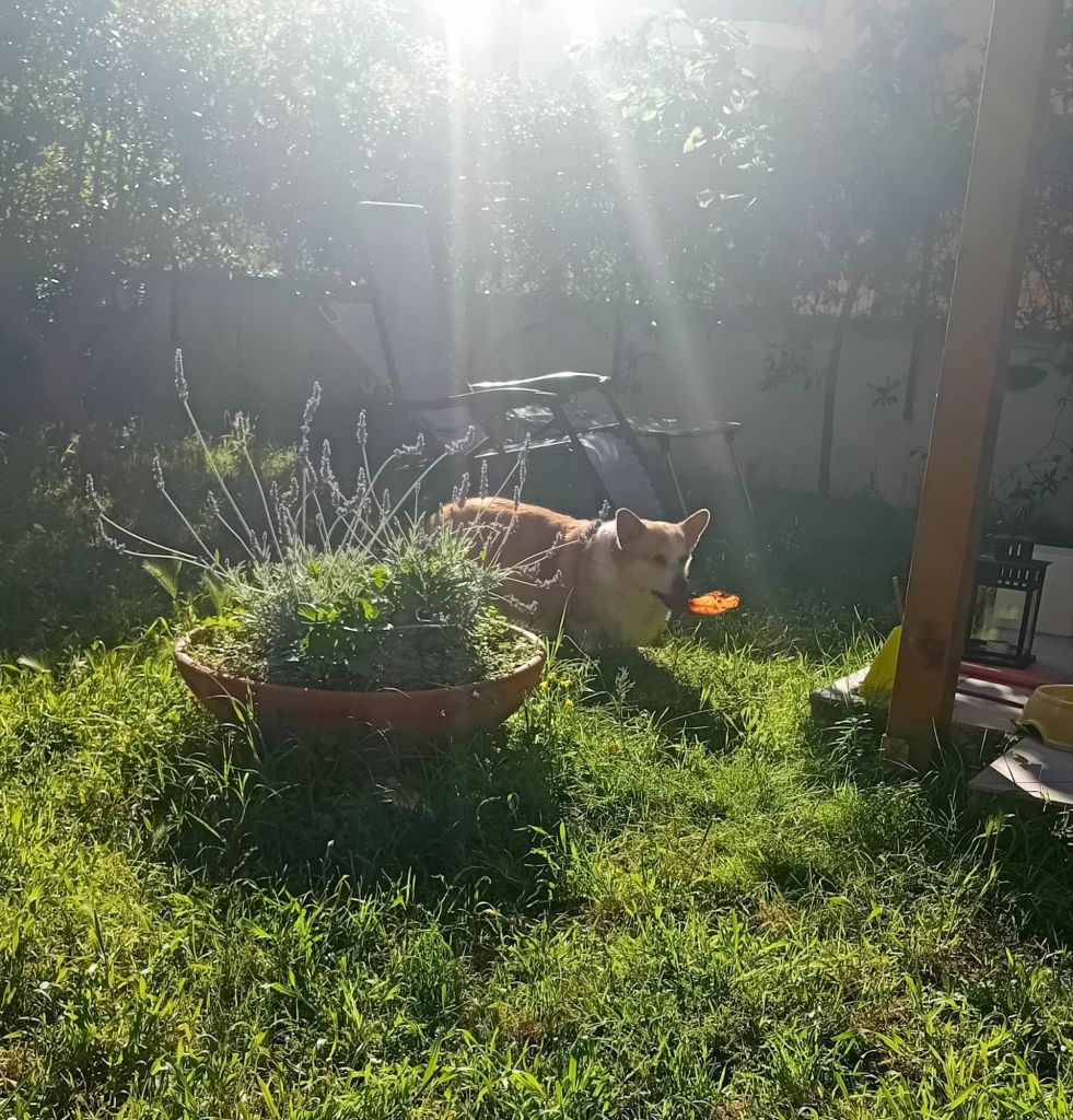 Just nu älskar jag att sitta i trädgården och äta frukost. Mitt i solen som kryper in bakom grannhuset sitter jag med kaffet och funderar. Hunden är helt med på noterna och börjar be om att få bli utsläppt redan klockan 7. Det går inte. Då blir ju grannarna tokiga om det skulle behövas någon liten utskällning.