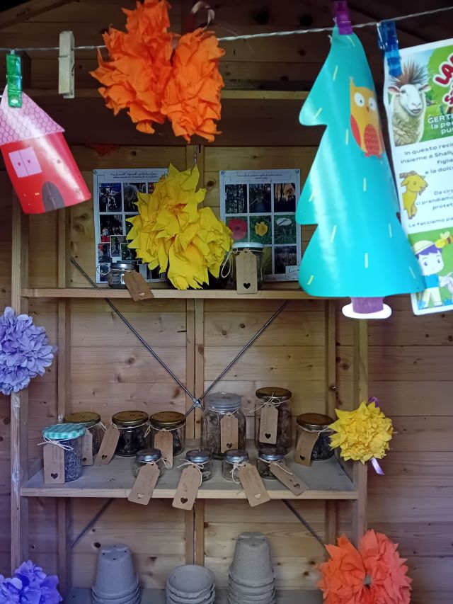 Man kan titta in och läsa om djuren som bor på gården. Djupstudera de lokala växterna och se deras frön i burkarna som står där på hyllorna.