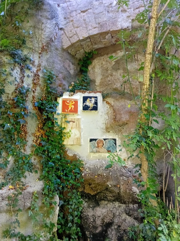 På murarna på den raserade borgen finns affresker som jag misstänker är moderna. Har ännu inte hittat någon information på det…eller så missade jag det där.