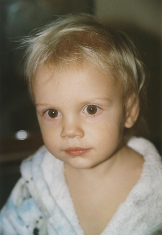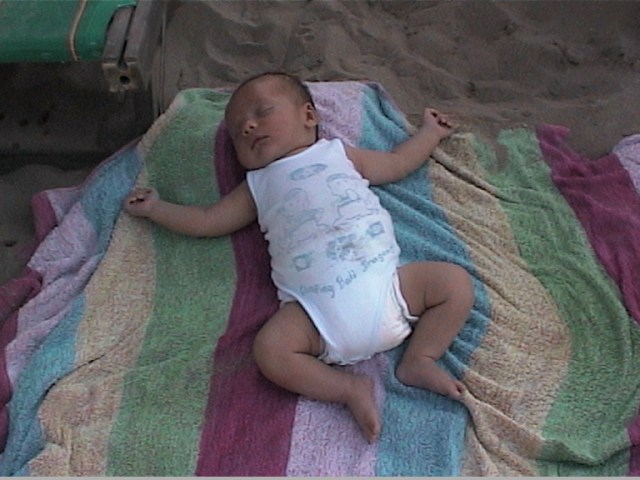 Bubblande skratt när man rörde honom. Skrek gjorde han bara när han var hungrig. Annars inga sura miner.