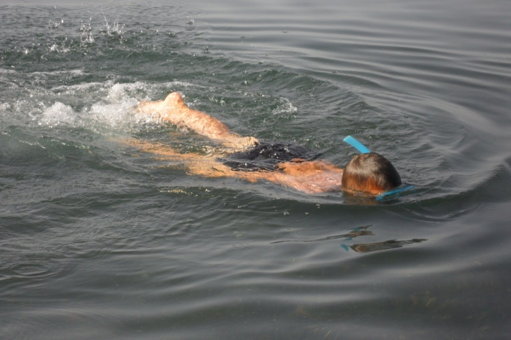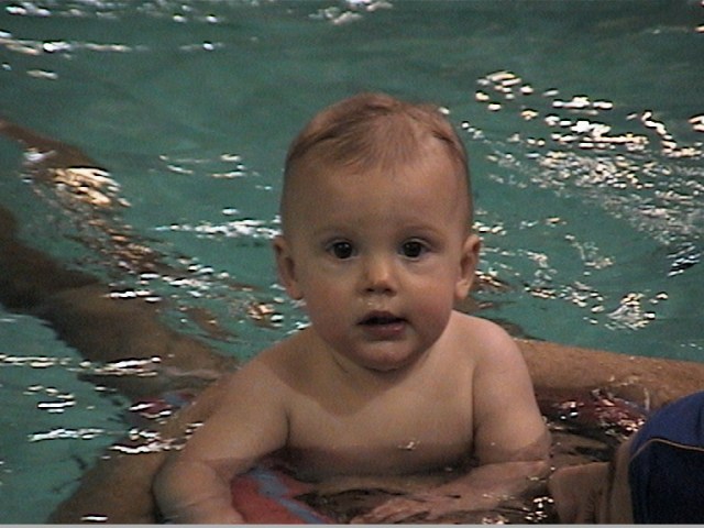 Läraren sa att han var född att simma. Otroligt rörlig. Kanske var det också för att han fick börja innan sin bror, som var 8/9 månader när jag fick tummarna loss. Jag hade fått in vanan så lillebror fick börja tidigare. När man bara är tre månader finns det där fostervattensminnet kvar. Simreflexerna har inte kommit av sig än.