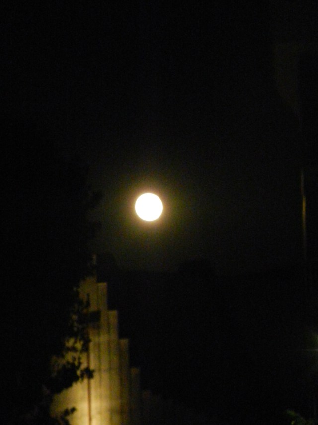 Till och med den fula moderna kyrkan blev suggestiv och nästan lite vacker med denna gula fullmåne i Stenbockens tecken (tror inte på astrologi men jag tycker det är lite kul hehe!).