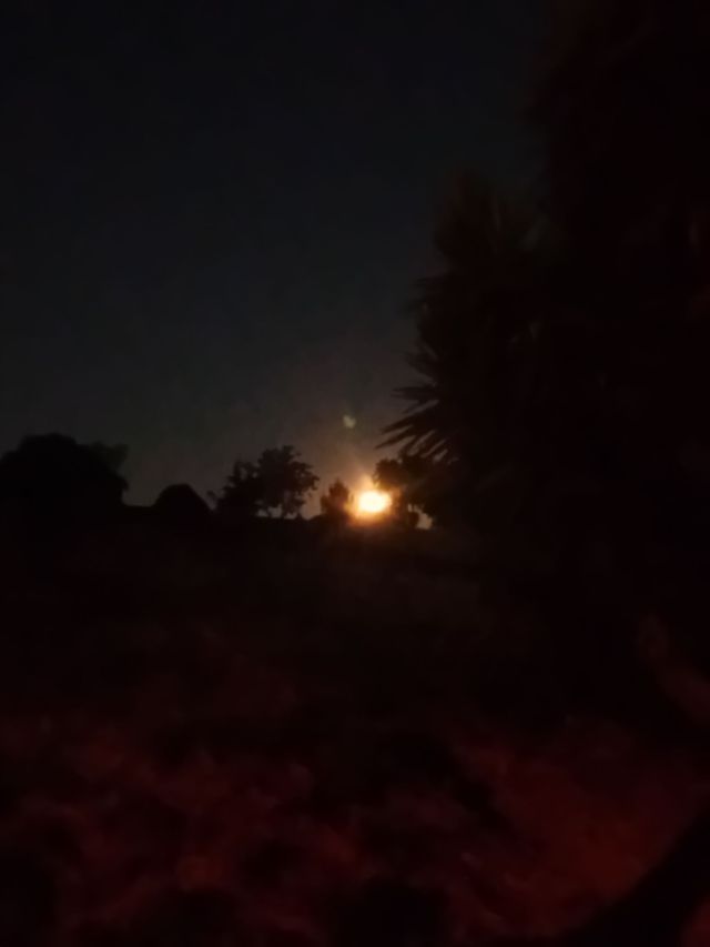 Den hängde mycket riktigt lågt denna gång men jag vågade inte gå in i parken. Jag hörde röster där inne. Troligtvis ungdomar som flamsade och skrattade. Det kändes ändå inte som en bra ide’ att traska rakt in i mörkret för att fota månen. Sa hon som vill ut och leva ensam i naturen hahaha!