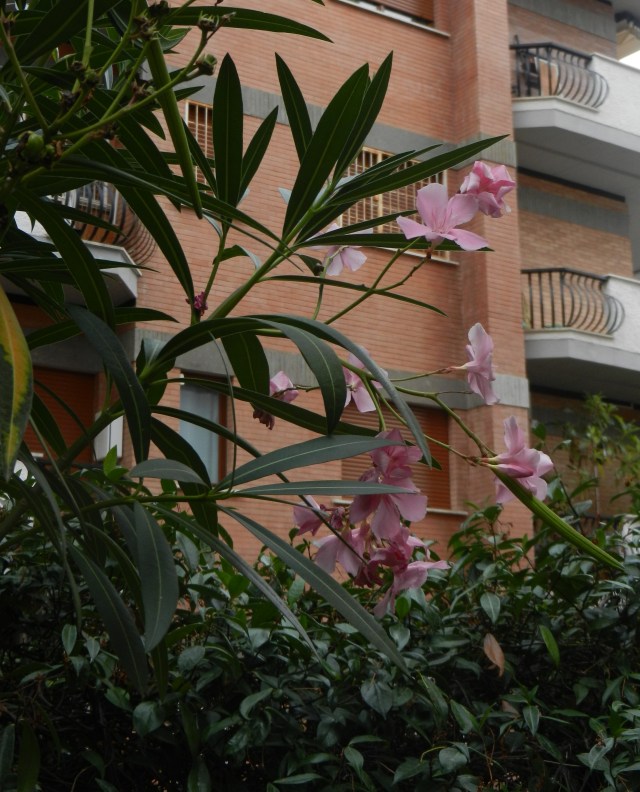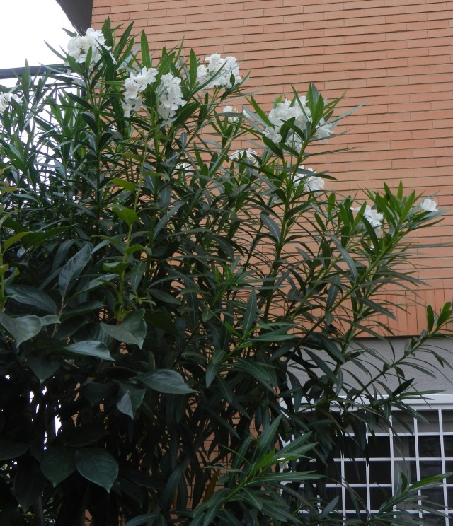 Åh ja, högt däruppe lyser oleandrarnas rosa och vita blommor.