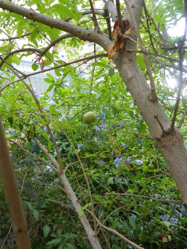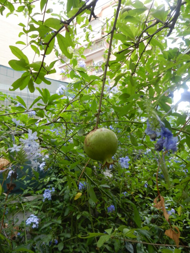1. Ja fast de senaste två åren har det inte varit så bra med granatäpplena. I fjor ingenting och i år kanske två. Två är redan halvt uppätna av fåglarna innan de hunnit mogna. Kram
