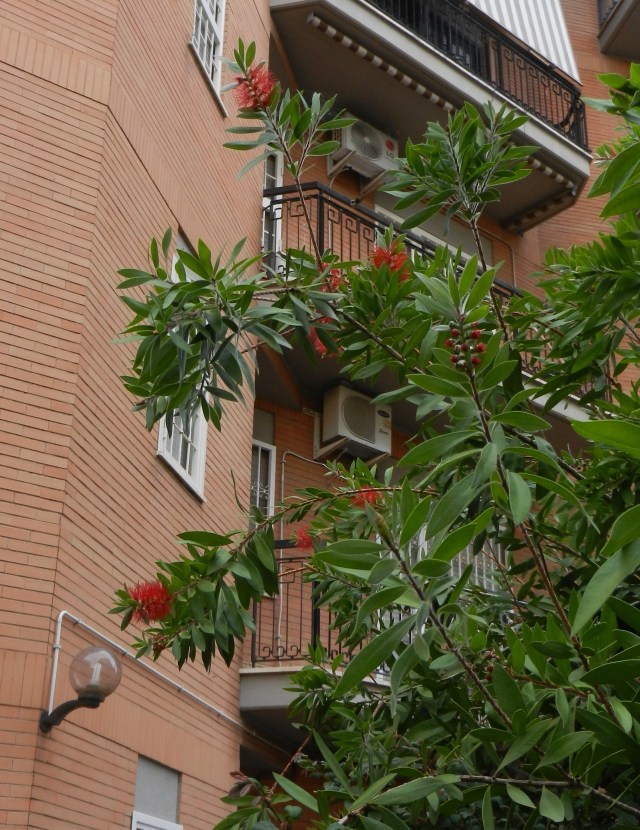 3. Här blommar också flaskborstträdet! Och då är det ett säkert kort att se blåmesarna igen, för de älskar något som finns där i blommorna. Hoppas det dyker upp fler granatäpplen, det är ju så gott! Jag beskär mitt träd väldigt hårt på vintern och tar bort alla tjuvskott på sommaren som växer ut på stammen, får ofta fler än 50 frukter. Och så har jag tagit en stickling så jag kan förhoppningsvis få ett till träd med mer skörd om ett gäng år. Kram