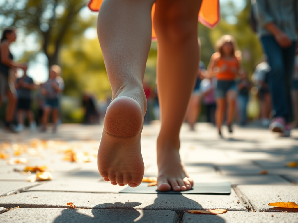 Antingen helt barfota, i trädgården, eller med minimala sandaler.