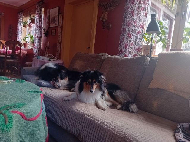 Dagen efter åt vi frukost länge. Gick en promenad till. Lunchade och vilade igen på soffan under filtar.