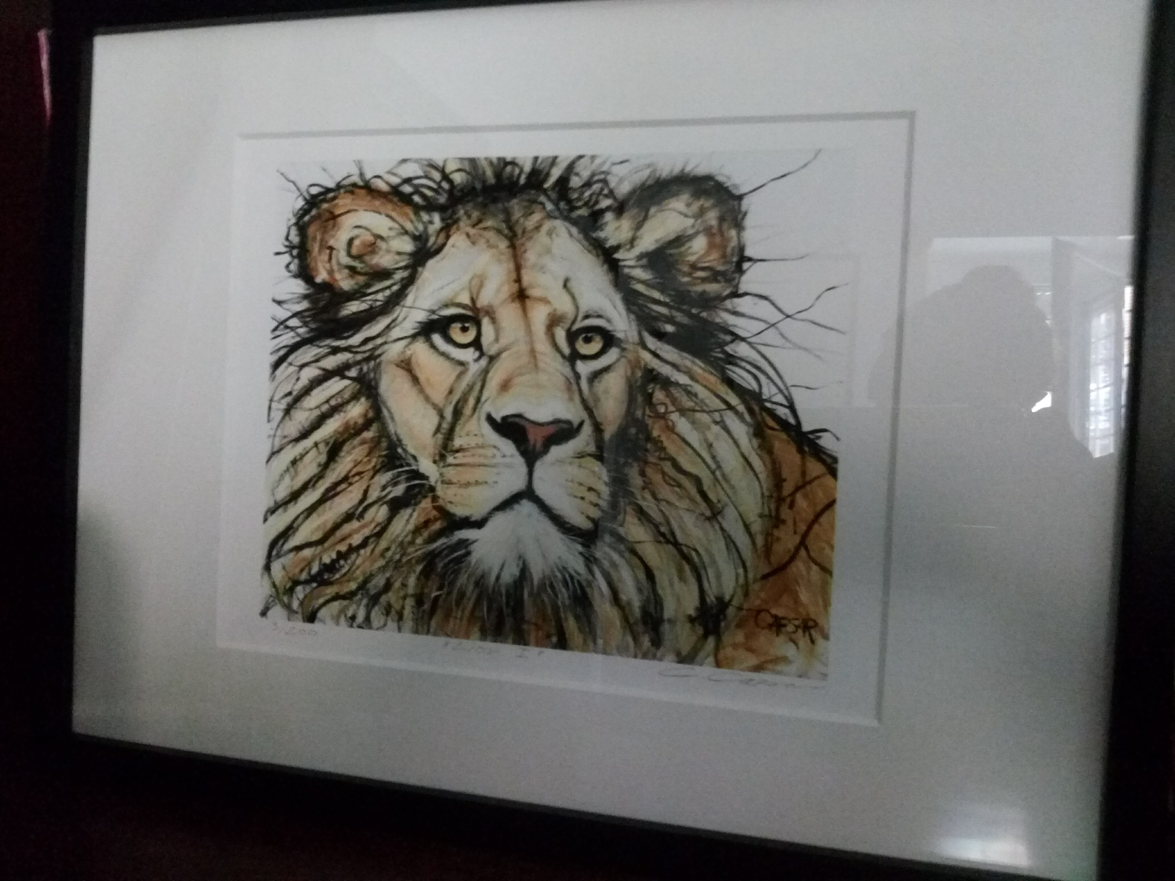 En målning gjord av en lokal konstnär. Jag har fått en av ett lejon som hänger i min yngste sons rum som jag tycker väldigt mycket om. Året då mor gick bort fick jag den.