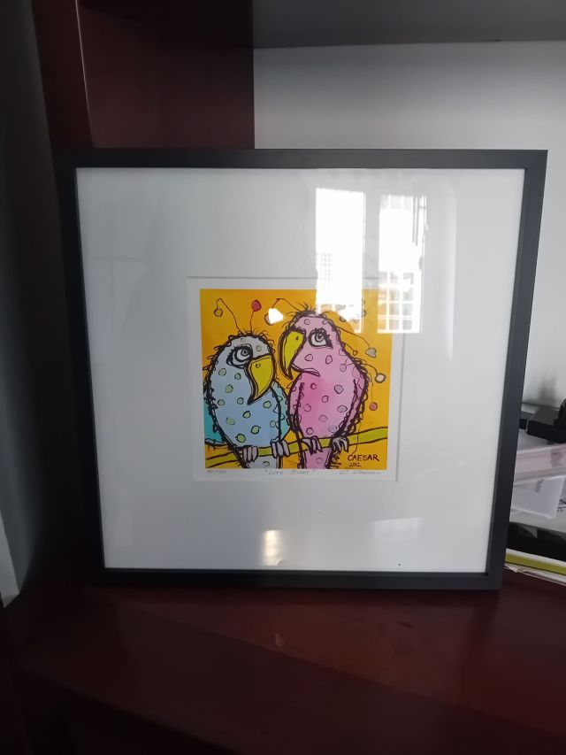 Hej Marika! Tycker om Love birds! Verkligen jättefin med passepartout och tunn svart ram. Den får du snart hänga upp!