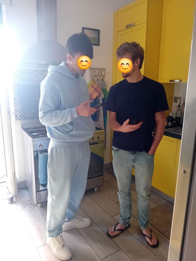 Jag ser de där två som står och pratar krig. Jämför fejkfilmer på mobilen. Diskuterar om Netanyahu är död och alla låtsas som ingenting…eller?…