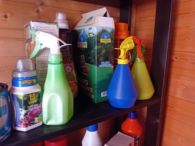 Samt ett otal insektsbekämpningsmedel av vilka jag dock tror en del stod här innan vi kom fast i förra lilla skjulet. De har bara fått flytta med.