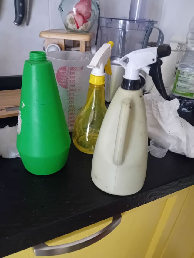 På bilden ser ni bara tre och det skulle ju kunna vara rimligt. En till såpvatten, en till bikarbonatvatten och en till vanligt vatten eller något annat man kan behöva.
